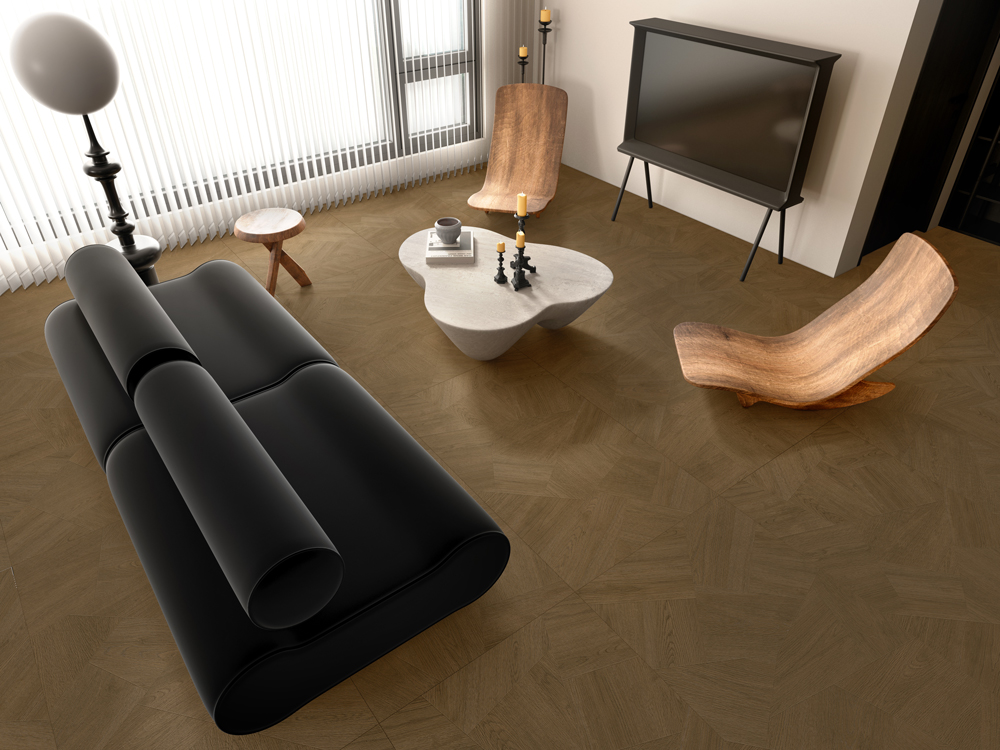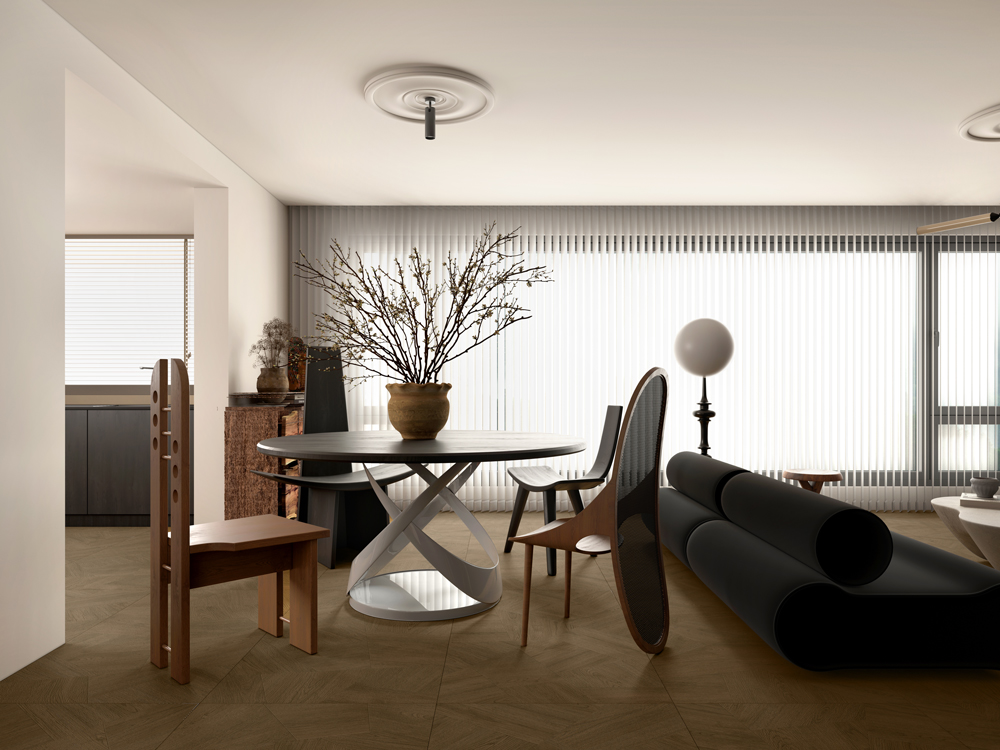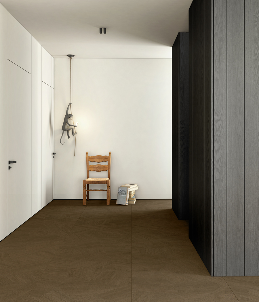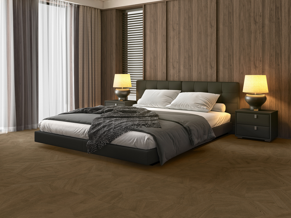 مستوحاة من سحر شوارع مدينة إيز الفرنسية العريقة، تتميز بلاطات خشب العود بنقوش خشبية طبيعية واضحة مع إحساس قوي بالنسيج المتشابك، ما يضفي عليها حيوية بصرية وتعبيرًا فنيًا مميزًا. وتزدان بنقوش عقد صينية محفورة بدقة، لتخلق جوًا غنيًا بالعمق الثقافي.
