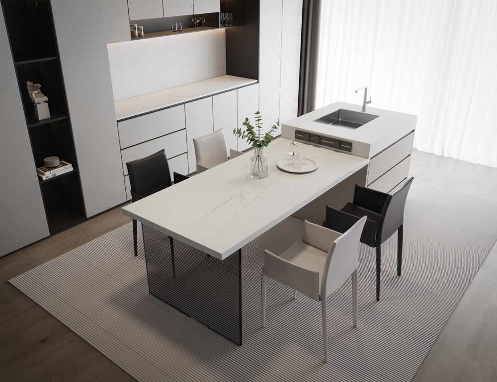 يتميز حجر أبوانو أورو الفاخر، الذي ينحدر من مدينة كارارا التاريخية في شمال إيطاليا، بقاعدة بيضاء ناعمة ودافئة ذات نقوش أنيقة متدفقة بدقة. ويكتسب سطحه بريقاً لامعاً، معززاً بدرجات ذهبية تشبه العسل تتشابك مع عروق الرخام المتبلورة، مما يخلق لوحة ألوان دافئة وراقية فريدة من نوعها، ترث فخامة وأناقة الأحجار الكريمة الخالدة.
