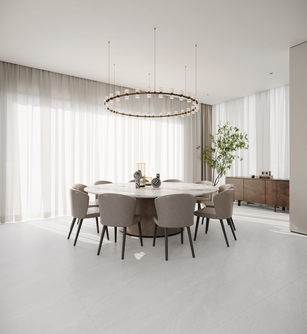 تُذكّرنا درجة اللون الرمادي الدافئ والراقي بالحجر الرملي الذي لامسته أشعة الشمس، مع لمسات خفيفة من الأبيض المائل للبيج والبني الفاتح متداخلة بشكل طبيعي. إنها تُشكّل أساسًا دافئًا، أنيقًا، ومتناسقًا.