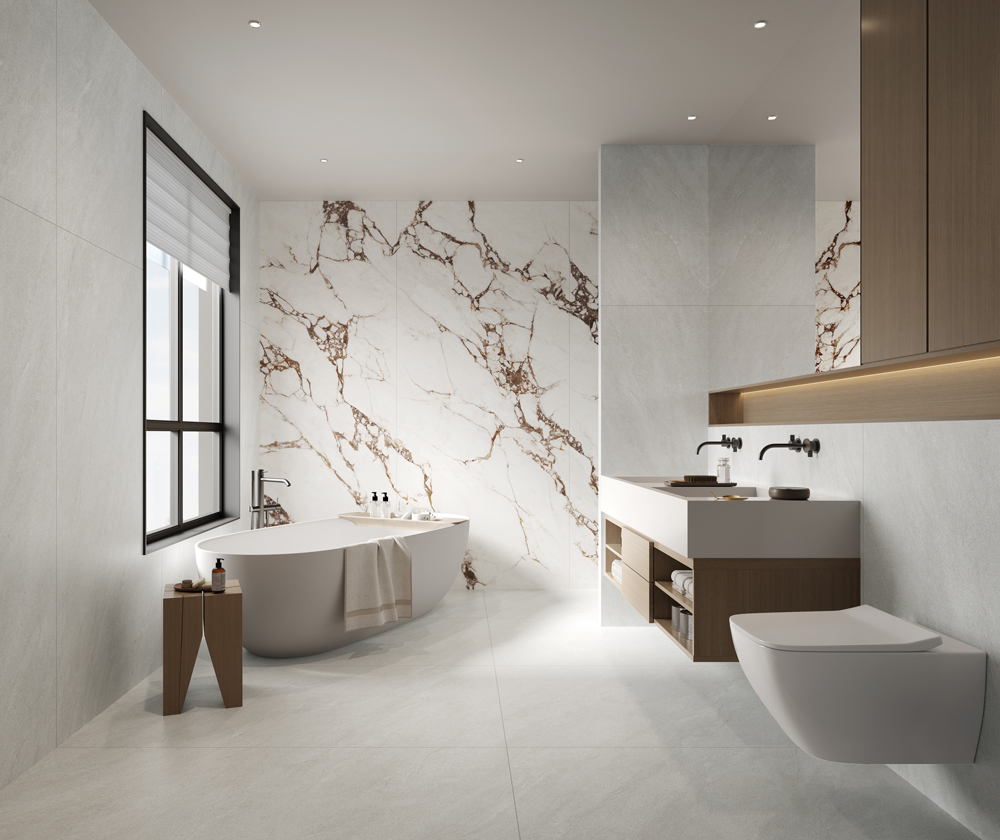 تستوحي مجموعة بلاط السيراميك من أوستن بيانكو تصميمها من شواطئ جولد كوست الرملية في كوينزلاند، لتجسد النسيج الطبقي للحجر الرملي الطبيعي. تتميز عروقها بنعومتها وانسيابيتها وغناها بالتنوع الطبيعي.