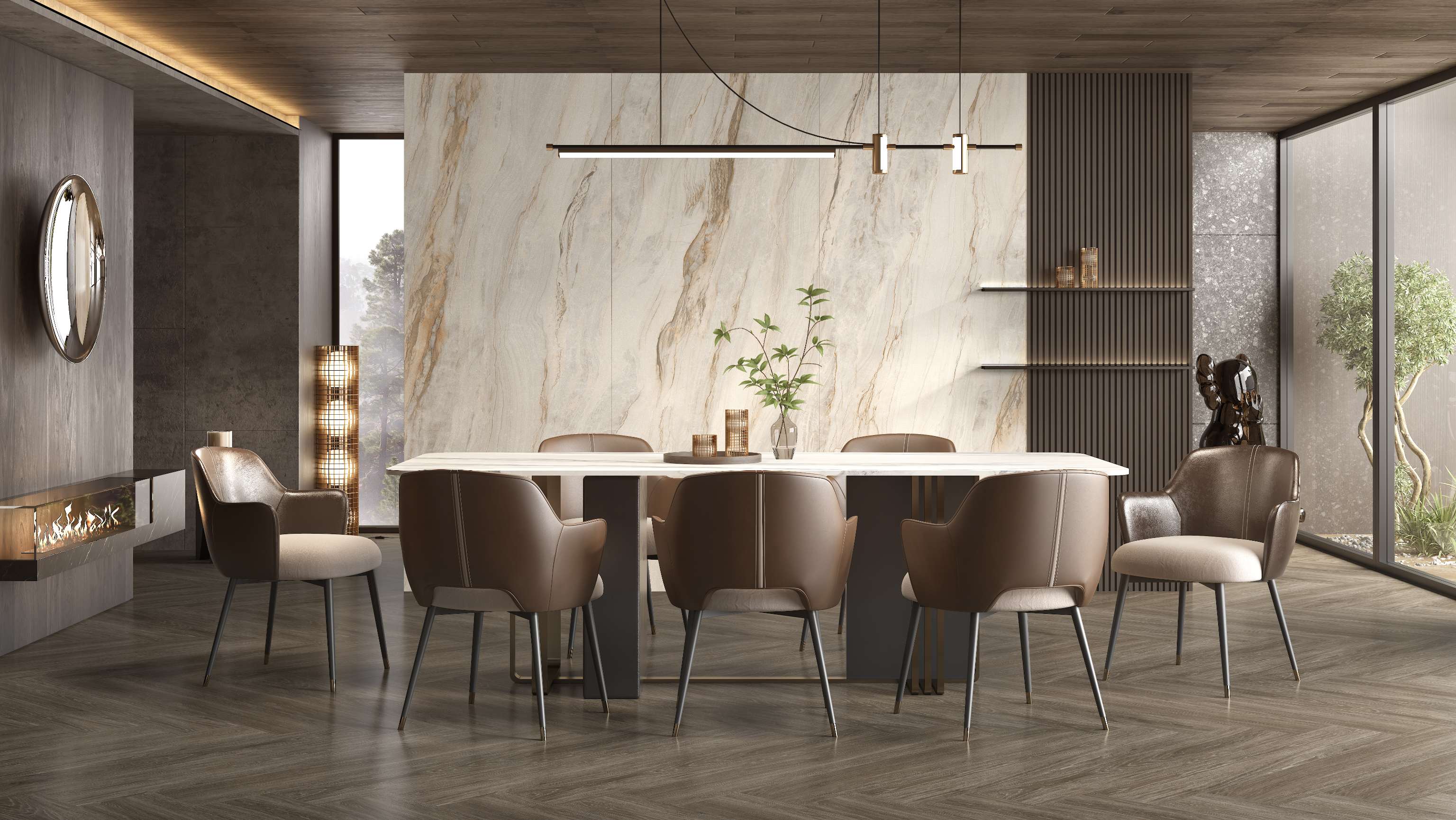 يُبرز بلاط البورسلين ذو التأثير الرخامي شبكةً من عروق الحجر الطبيعي المعقدة، بتنوعها اللانهائي وجمالها الأخّاذ. سطحه ناعم كالحرير عند اللمس، مع تباينات دقيقة في الملمس. نقوشه الفاخرة والعظيمة تجعله مثاليًا للمساحات المفتوحة، مما يخلق جوًا عصريًا أنيقًا وبسيطًا.