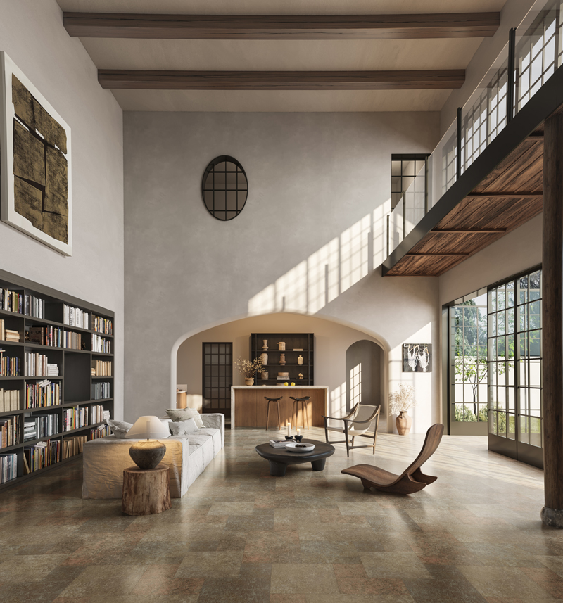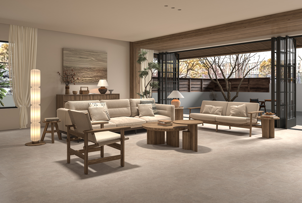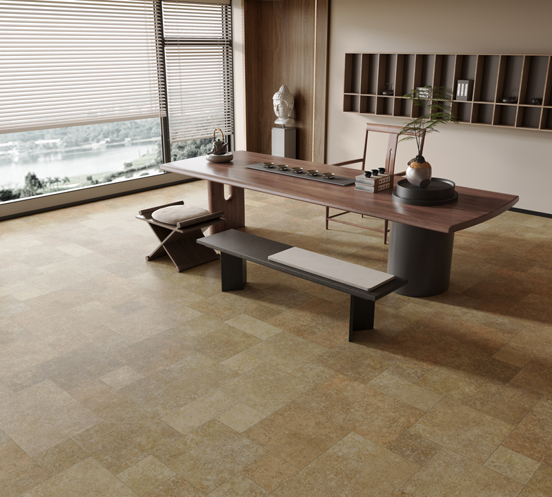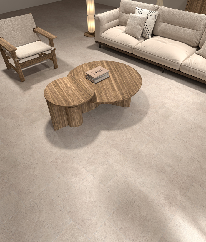 تتفاوت سماكة النسيج، مرتبة بشكل متداخل وإيقاعي. تتميز سلسلة بلاط أرضيات كاسل ستون بنسيج صخري خشن وجمال طبيعي رقيق - كآثار الزمن، تستحضر مرور السنين وثقل التاريخ.