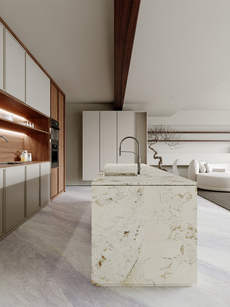 صُممت هذه اللوح متعدد الاستخدامات ذو الحجم الكبير ( 3200×1600×12 مم ) بسطح ذي ملمس حجري فاخر يُحاكي مظهر الرخام ، ليجمع بين الجمال والمتانة في آنٍ واحد. يُعد هذا اللوح مثاليًا ليس فقط للأرضيات والجدران المميزة، بل أيضًا لأسطح المطابخ، وأحواض الحمامات، وغيرها من الأسطح كثيرة الاستخدام، ليضفي لمسة من الأناقة الجليدية والأداء المتميز على أي مساحة.