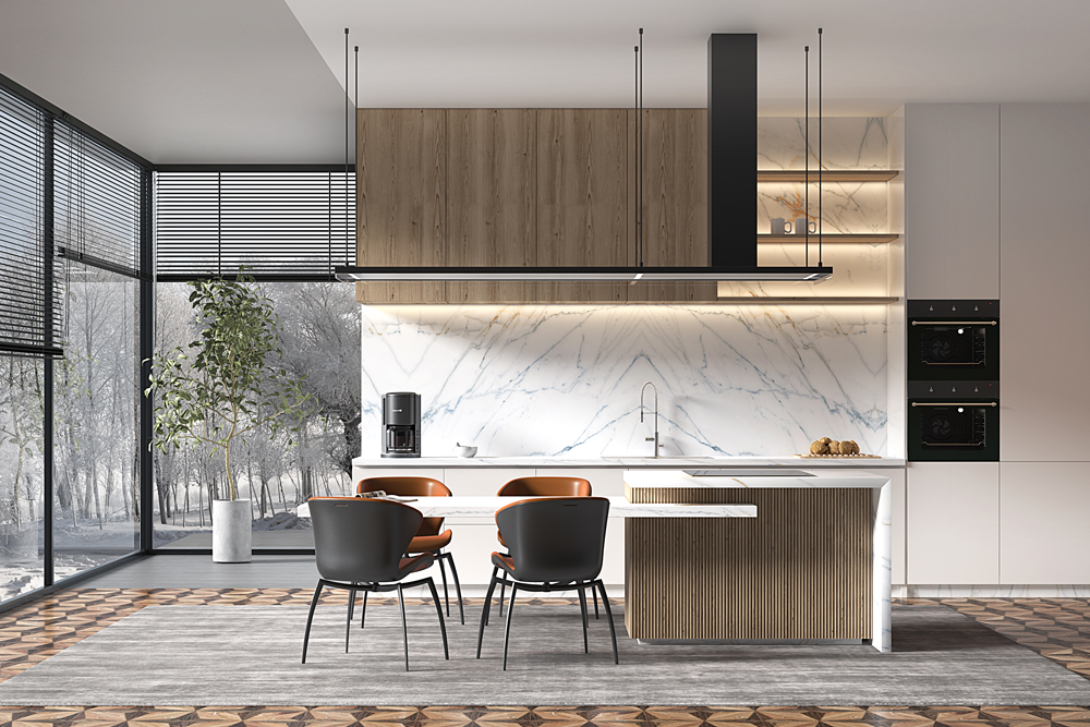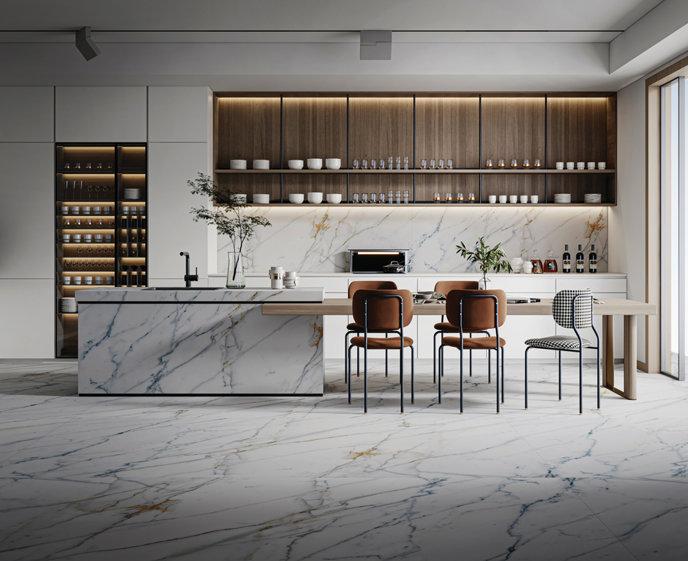 ألوان متناقضة متطورة، وأنماط متنوعة. يخلق التناغم بين الذهبي النبيل والفاخر والأزرق الهادئ والأنيق مساحةً رائعةً هادئةً وفخمةً.